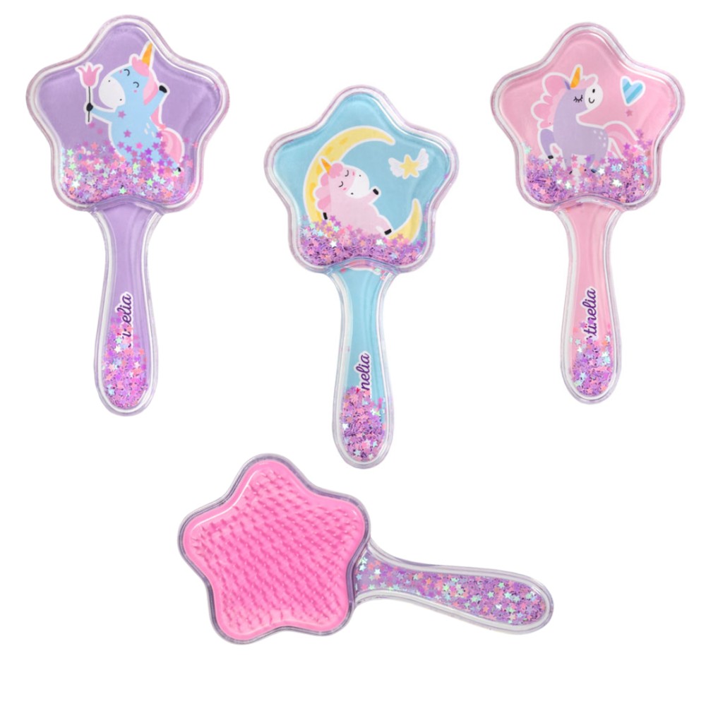 Η Martinelia Unicorn Star Hair Brush κάνει το χτένισμα μια μαγική εμπειρία! Με χαριτωμένα σχέδια μονόκερων και λαμπερά glitters που κινούνται, αυτή η βούρτσα θα γίνει η αγαπημένη κάθε μικρής πριγκίπισσας. Απαλή με τα παιδικά μαλλιά, ξεμπερδεύει εύκολα χωρίς τραβήγματα — πάντα με στιλ και φαντασία!