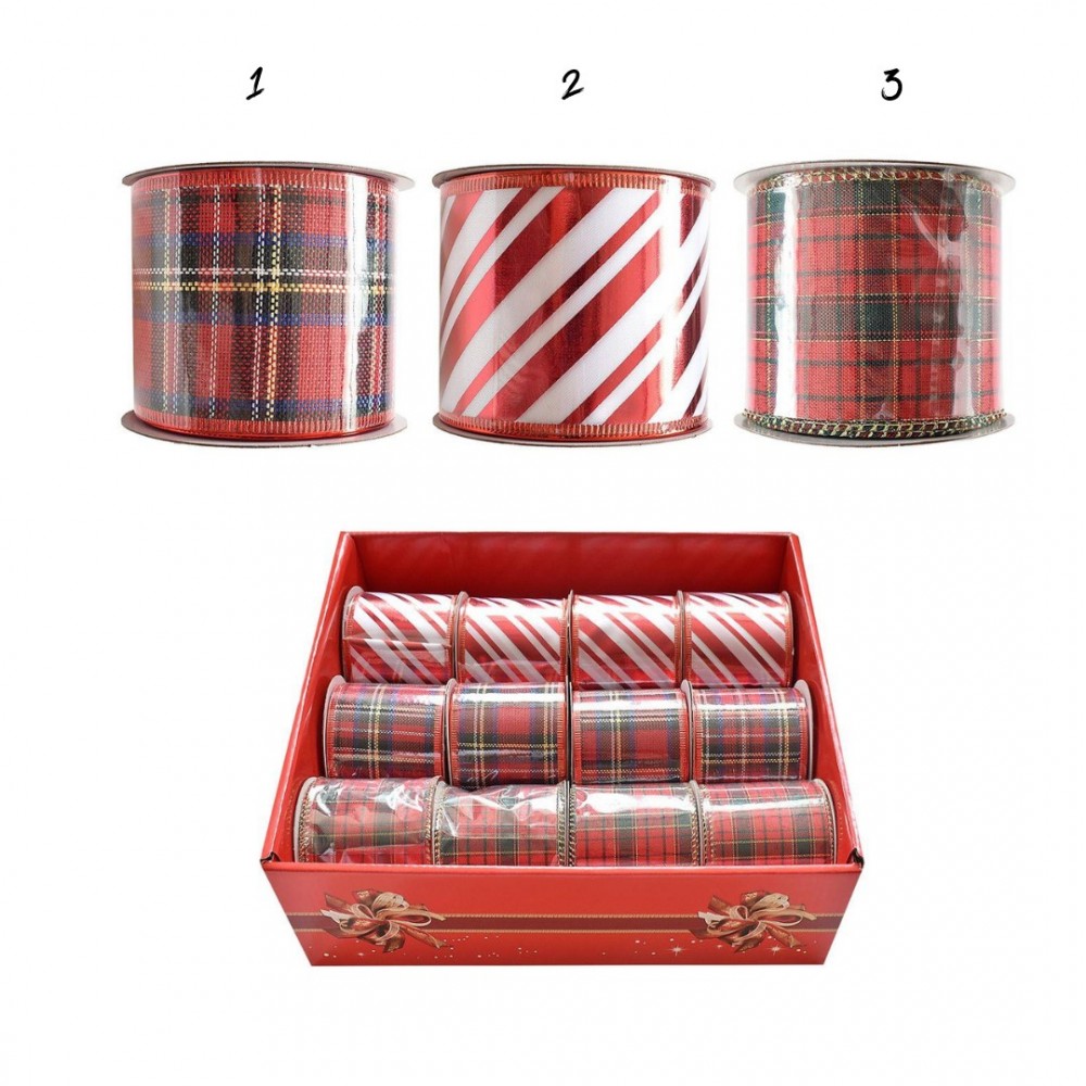 Πολυτελείς κορδέλες διακόσμησης με εορταστικά σχέδια σε κόκκινες αποχρώσεις. Διαθέσιμες σε τρία μοναδικά μοτίβα: καρό ταρτάν, ριγέ candy cane και παραδοσιακό σκωτσέζικο καρό. Ιδανικές για χριστουγεννιάτικη διακόσμηση και συσκευασία δώρων.