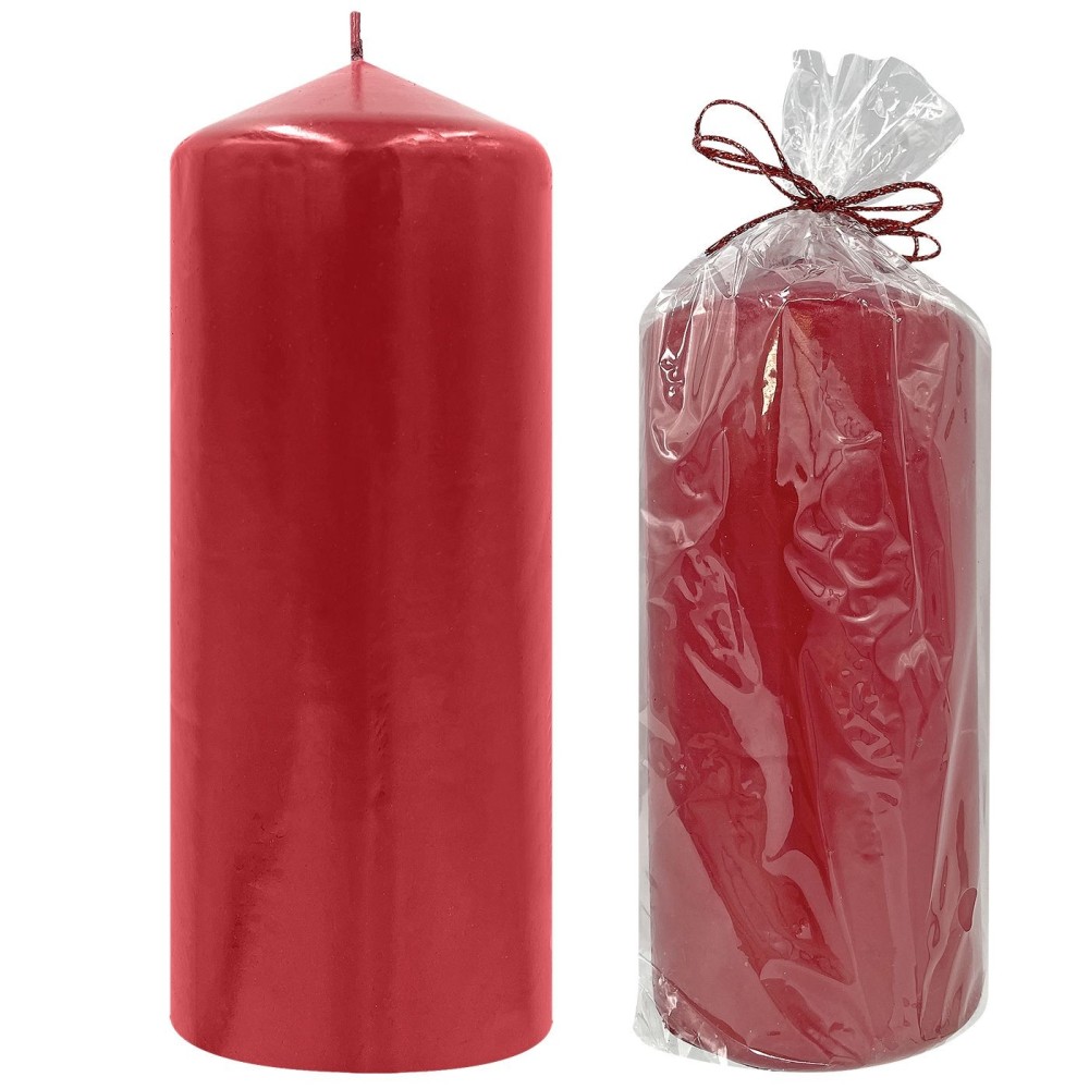 Κερί κολώνα σε βαθύ κόκκινο χρώμα με ματ φινίρισμα. Κυλινδρικό σχήμα, ιδανικό για ζεστή εορταστική ατμόσφαιρα. Συσκευασμένο σε διάφανη σελοφάν με κόκκινη διακοσμητική κορδέλα, τέλειο για δώρο. Προσθέτει κλασική χριστουγεννιάτικη πινελιά σε κάθε χώρο.