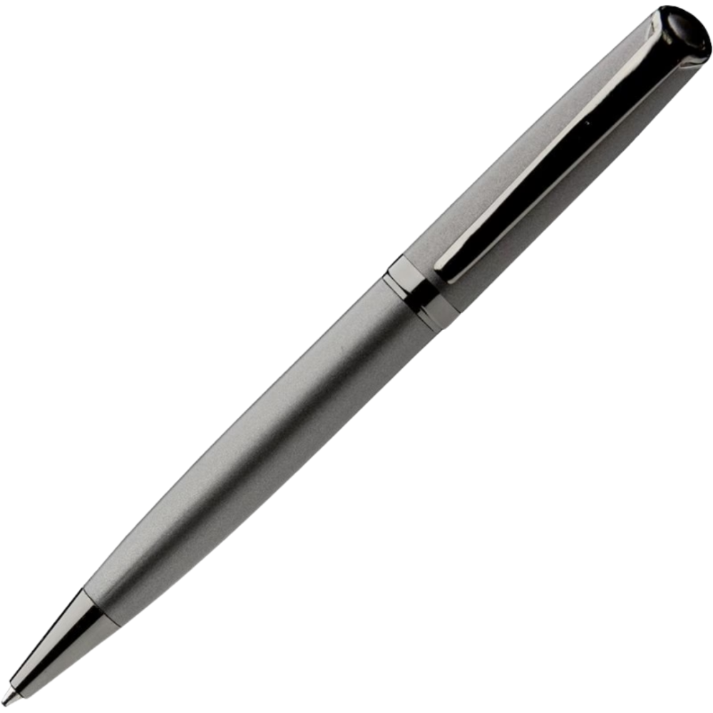 Μοντέρνο στυλό με ματ ασημί σώμα και καπάκι που δημιουργούν εντυπωσιακή αντίθεση. Ο κομψός μίνιμαλ σχεδιασμός με ασημί λεπτομέρειες εκπέμπει επαγγελματισμό. Περιστροφικός μηχανισμός και εργονομική σχεδίαση εξασφαλίζουν άνετη, ομαλή γραφή για καθημερινή χρήση.