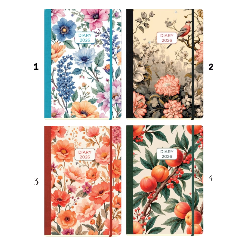 Ημερολόγιο Ημερήσιο 2026 με εκλεπτυσμένα βοτανικά σχέδια. Τέσσερις μοναδικές επιλογές με υδατογραφίες λουλουδιών, vintage απεικονίσεις πουλιών, παπαρούνες και φρέσκα φρούτα. Κάθε ημερολόγιο διαθέτει ελαστικό κλείσιμο και εκφράζει διαφορετική αισθητική. Τέλεια για καθημερινή οργάνωση με στυλ και χάρη.