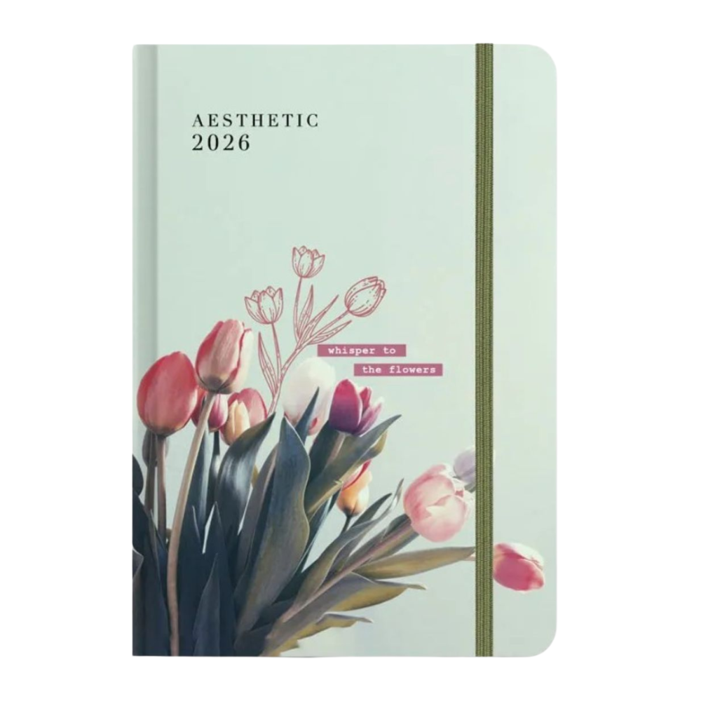 Το αισθητικό ημερολόγιο 2026 με τουλίπες συνδυάζει λειτουργικότητα και τέχνη. Το ρομαντικό εξώφυλλο με ροζ τουλίπες και το εμπνευσμένο μήνυμα "whisper to the flowers" δημιουργεί ποιητική ατμόσφαιρα. Ιδανικό για οργάνωση με στυλ, προσφέρει χώρο για σημειώσεις και όνειρα.