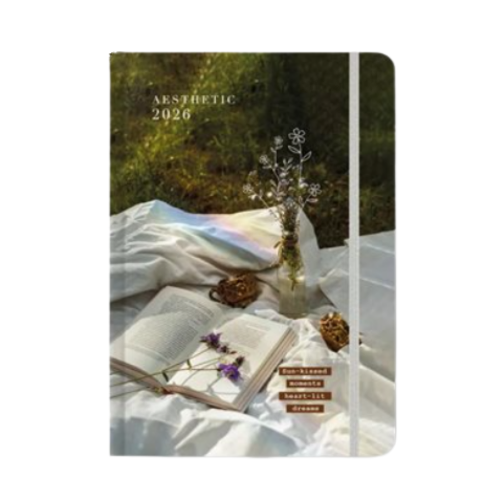 Ημερολόγιο Ημερήσιο 2026 με αισθητική "aesthetic" που αγκαλιάζει όνειρα και αναμνήσεις. Καλλιτεχνικό εξώφυλλο με ολογραφικά υφάσματα, ξηρά λουλούδια και vintage στοιχεία δημιουργούν μια ονειρεμένη ατμόσφαιρα. Ιδανικό για δημιουργικές ψυχές που αναζητούν έμπνευση και προσωπική έκφραση στην καθημερινότητά τους.