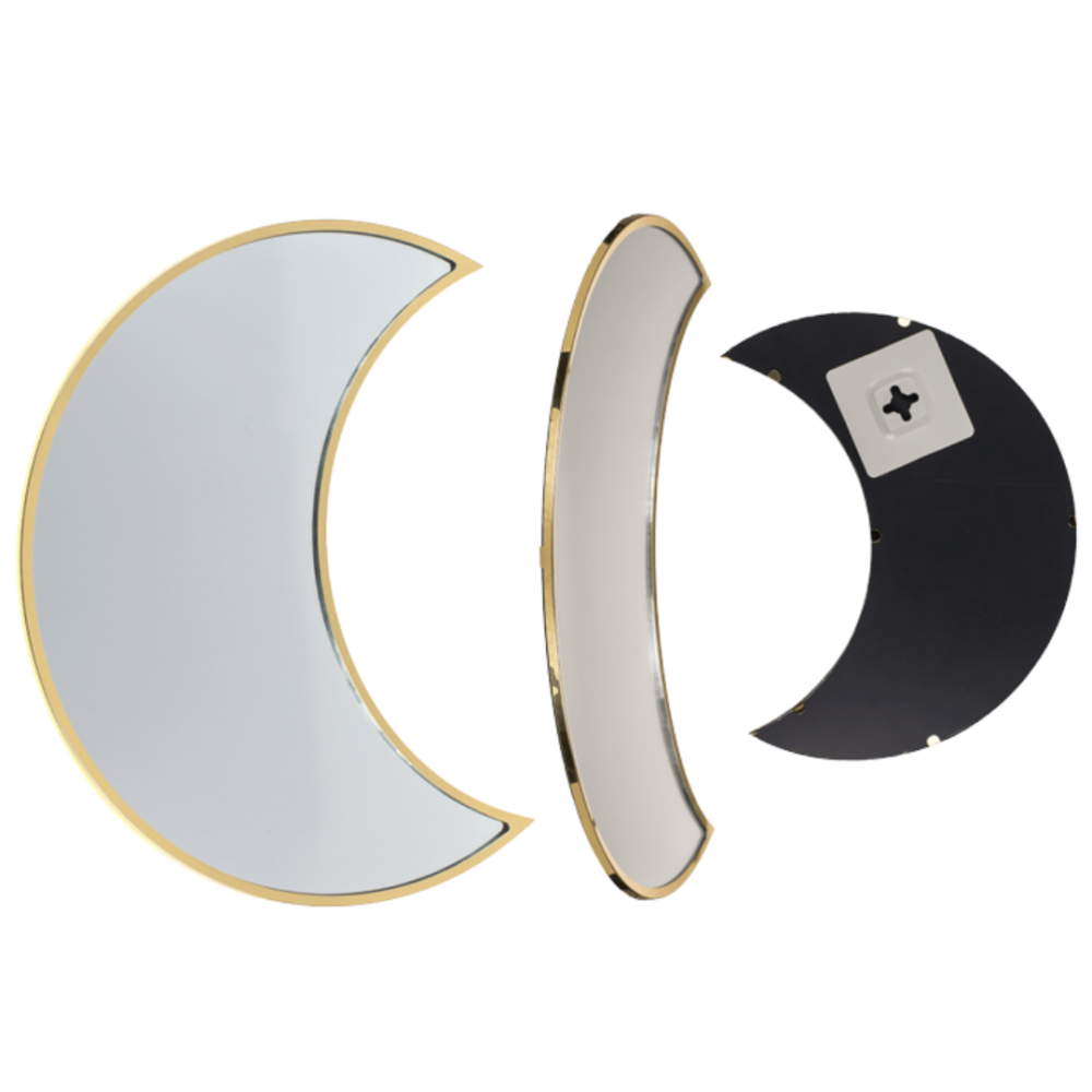 Διακοσμητικός καθρέφτης σε σχήμα φεγγαριού με χρυσό περίγραμμα. Μοντέρνο και κομψό design που προσθέτει στυλ και βάθος σε κάθε χώρο. Ιδανικό για σαλόνι, υπνοδωμάτιο ή χώρο εισόδου. Εύκολη τοποθέτηση σε οποιονδήποτε τοίχο.