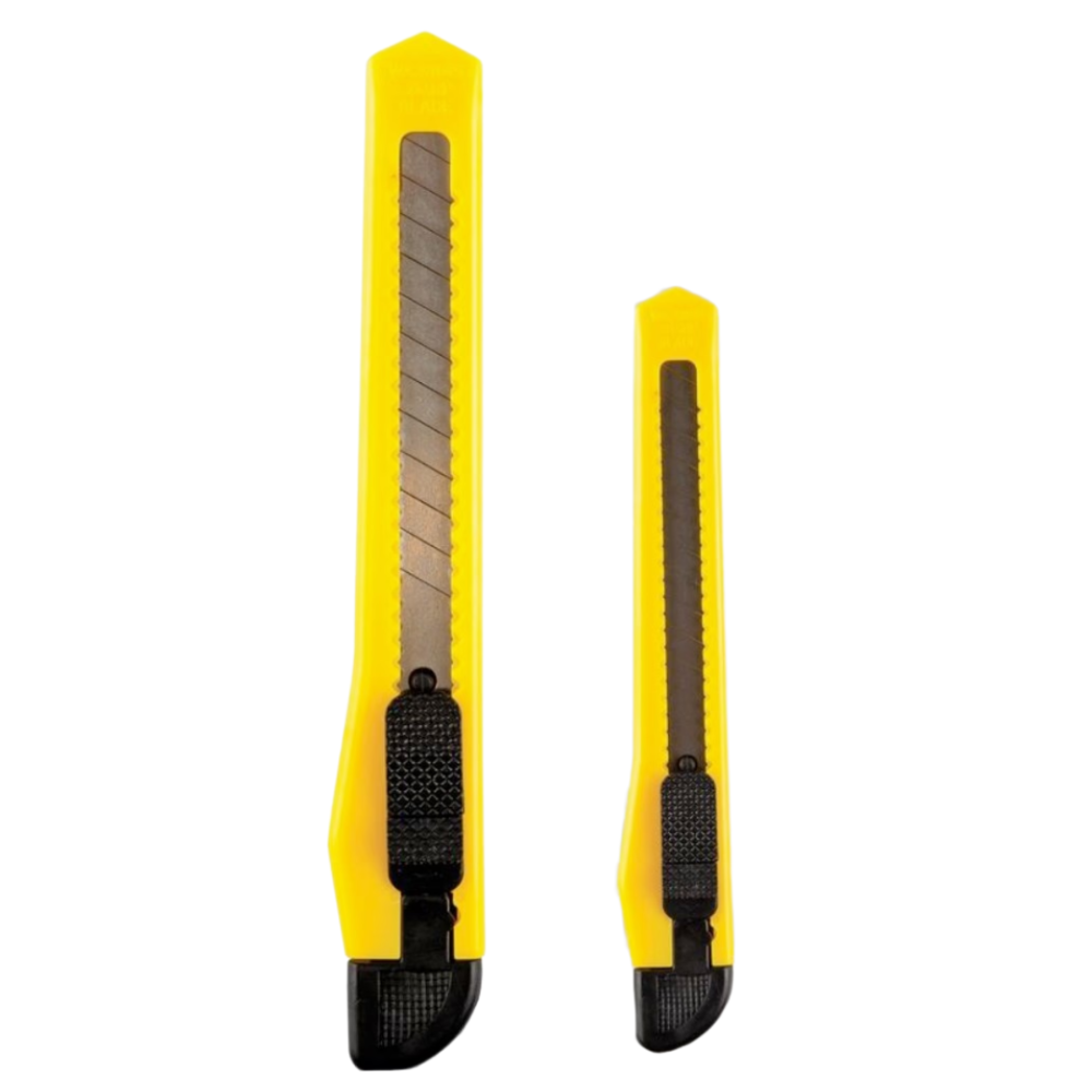 Κοπίδι ασφαλείας σε κίτρινο χρώμα με αναδιπλούμενες λεπίδες, ασφαλιστικό μηχανισμό και αντιολισθητική λαβή. Ιδανικό για ακριβείς κοπές σε χαρτί, χαρτόνι και άλλα ελαφριά υλικά. Ασφαλής σχεδιασμός για γραφείο, σπίτι και χειροτεχνίες.