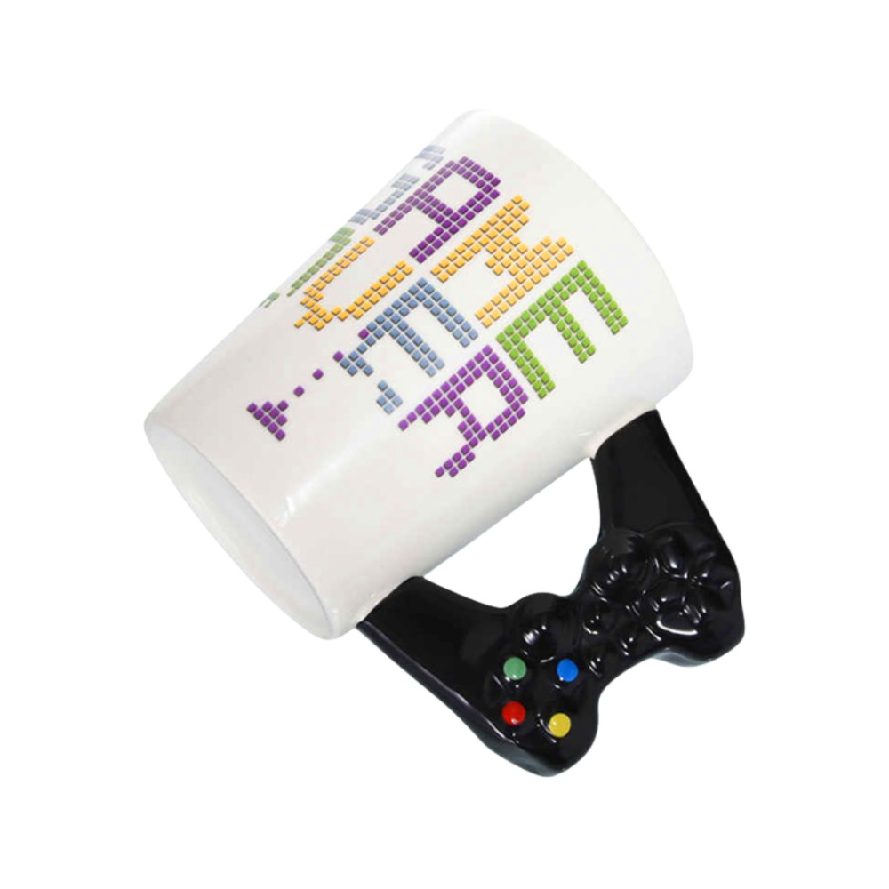 Πρωτότυπη κούπα με χειρολαβή σε σχήμα χειριστηρίου gaming είναι το τέλειο δώρο για gamers! Με το μήνυμα "GAME OVER" σε pixel art στυλ και μαύρη χειρολαβή-controller με πολύχρωμα κουμπιά, κάνει την κάθε γουλιά επική. Συνδυάστε τον καφέ με το πάθος για gaming!