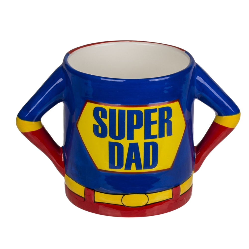 Μοναδική κεραμική κούπα σε σχήμα σούπερ ήρωα είναι το τέλειο δώρο για κάθε πατέρα. Με έντονα μπλε, κόκκινα και κίτρινα χρώματα και την επιγραφή "SUPER DAD", μετατρέπει την πρωινή ρουτίνα σε ηρωική εμπειρία. Πρωτότυπο και διασκεδαστικό δώρο.