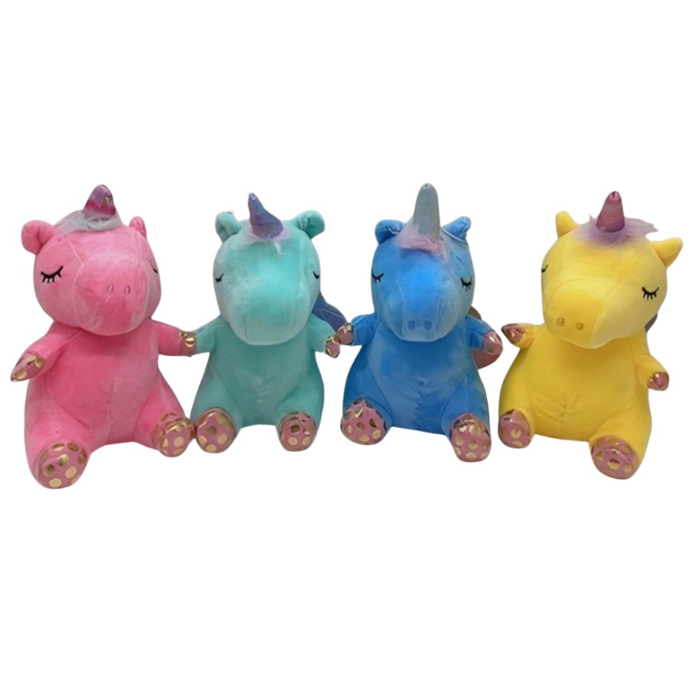 Λατρευτός λούτρινος μονόκερος σε παστέλ χρώματα με κλειστά μάτια και ιριδίζουσες λεπτομέρειες στο κέρατο και τα πόδια που δημιουργούν μαγική ατμόσφαιρα. Η απαλή υφή και το χαριτωμένο σχεδιασμό τα καθιστούν ιδανικό για αγκαλιά και διακοσμητικό παιδικού δωματίου που εμπνέει φαντασία και χαρά.