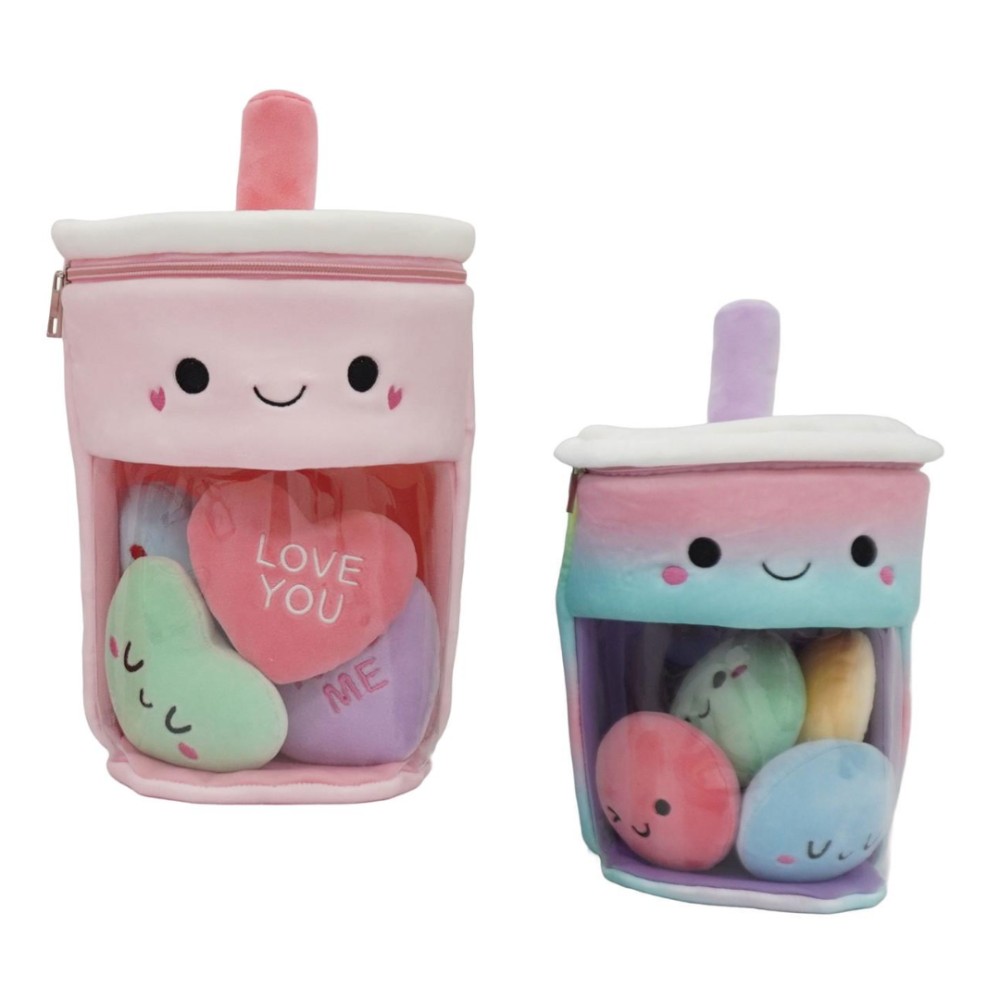 Το πιο γλυκό και χαριτωμένο λούτρινο σετ! Aπαλή, πολυχρωματική λούτρινη θήκη/τσάντα με διαφανές μπροστινό μέρος και μικρά λούτρινα “boba pearls”. Με γλυκό προσωπάκι, παστέλ χρώματα και απαλό ύφασμα, αποτελεί το τέλειο δώρο για μικρούς και μεγάλους!