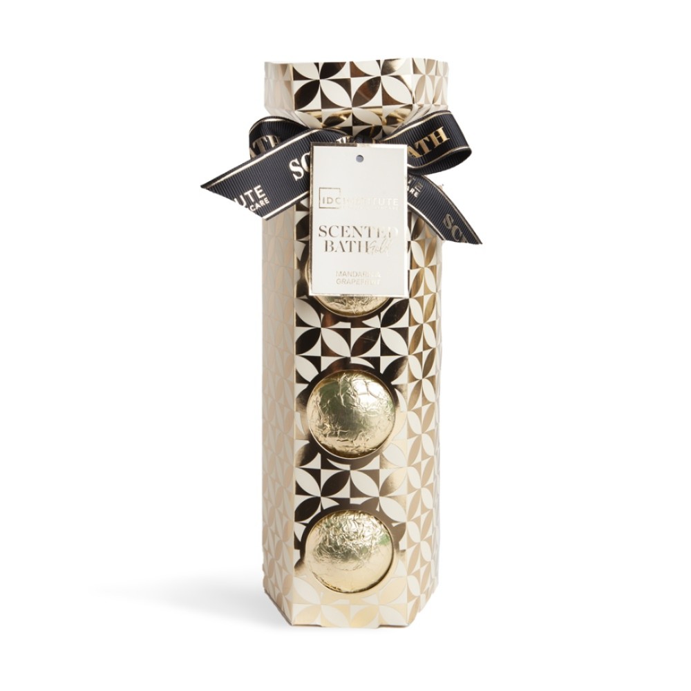 Αναζωογονήστε τις αισθήσεις με το Scented Bath Fizzer Set Mandarin & Grapefruit από την IDC Institute! Τρεις μπάλες αφρόλουτρο με φρουτώδη, ενεργητικό άρωμα μανταρίνι & γκρέιπφρουτ, σε μια πολυτελή χρυσή συσκευασία δώρου. Ιδανικό για χαλαρωτικά μπάνια που αφήνουν την επιδερμίδα απαλή και αρωματισμένη.