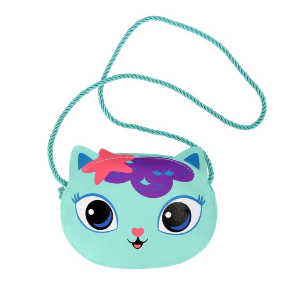 Χαριτωμένη μικρή τσάντα crossbody σε σχήμα γατάκι σε τιρκουάζ χρώμα, μεγάλα εκφραστικά μάτια, πολύχρωμα μαλλιά-φτερά και καρδούλα μύτη, το τέλειο αξεσουάρ για μικρά κορίτσια. Με λεπτό κορδόνι ώμου και φερμουάρ, κρατά τους μικρούς θησαυρούς ασφαλή!