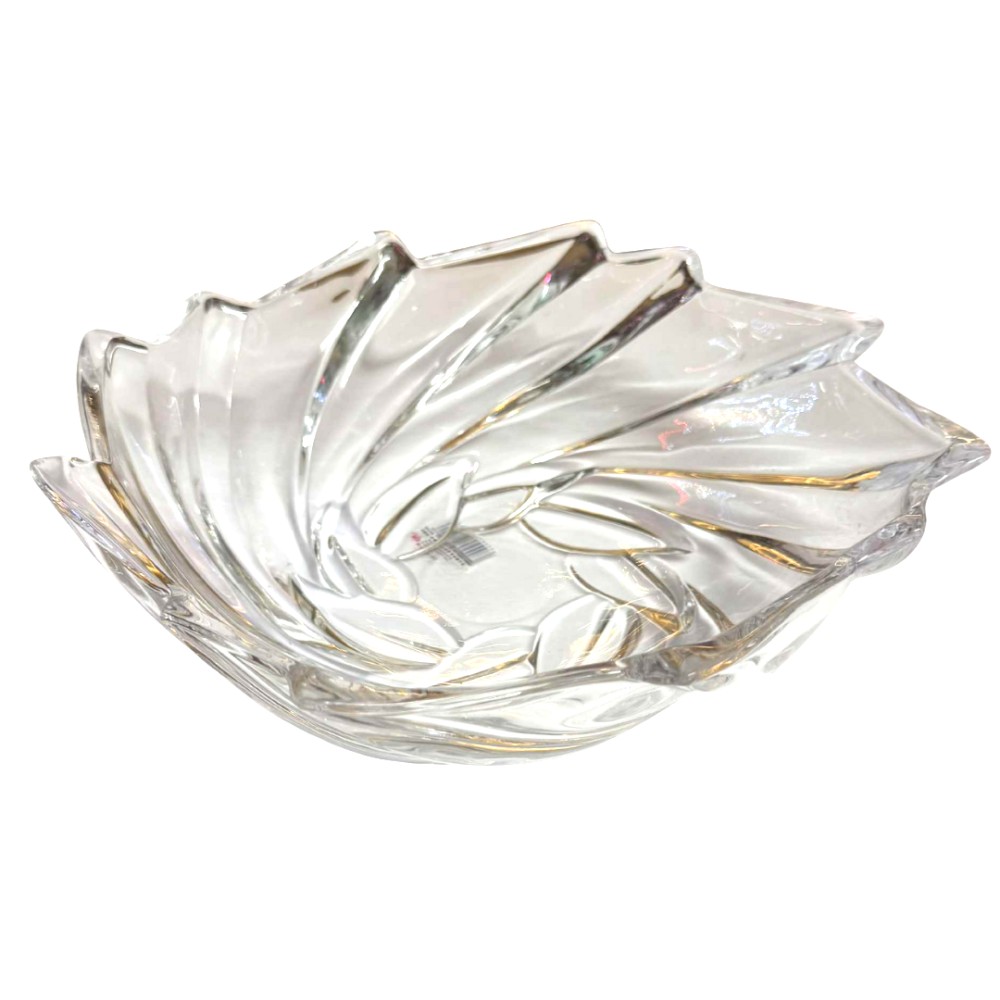 Εντυπωσιακό γυάλινο μπωλ με σχέδιο φύλλου που δημιουργεί οργανικές καμπύλες και φυσική αισθητική. Η διάφανη κατασκευή με λεπτομερείς νευρώσεις και στριφτή φόρμα προσφέρει κομψότητα. Ιδανικό για σερβίρισμα γλυκών, φρούτων, ορεκτικών ή ως αυτόνομο διακοσμητικό κομμάτι που προσθέτει φυσική χάρη.