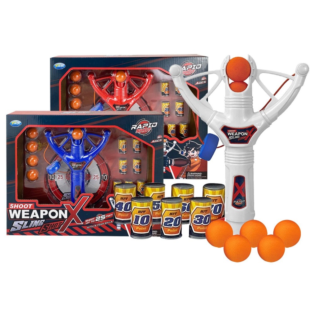 Σετ παιχνιδιού με σφεντόνα Weapon Sling Shot για ατελείωτη διασκέδαση στόχευσης. Περιλαμβάνει εργονομική λαβή με ελαστικούς ιμάντες εκτόξευσης, αφρώδεις μπάλες και κουτάκια-στόχους με βαθμολογία. Ιδανικό για ανάπτυξη ακρίβειας και συντονισμού. Ασφαλές παιχνίδι υπαίθριας ή εσωτερικής χρήσης με πλήρη εξοπλισμό.