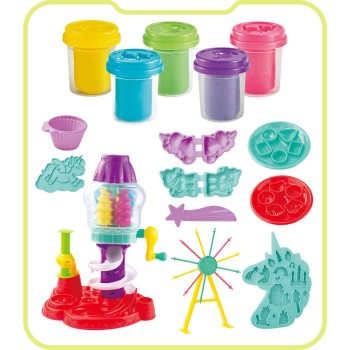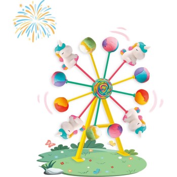 Φανταστικό σετ πλαστελίνης Luna Toys με θέμα Rainbow Candyland. Περιλαμβάνει βάση, ρόδα λούνα παρκ, μονόκερους και πολλά καλούπια. Δημιουργήστε γλυκά, cupcakes και μαγικές φιγούρες. Αναπτύσσει δημιουργικότητα, φαντασία και λεπτή κινητικότητα. Ιδανικό για συλλογικό παιχνίδι.