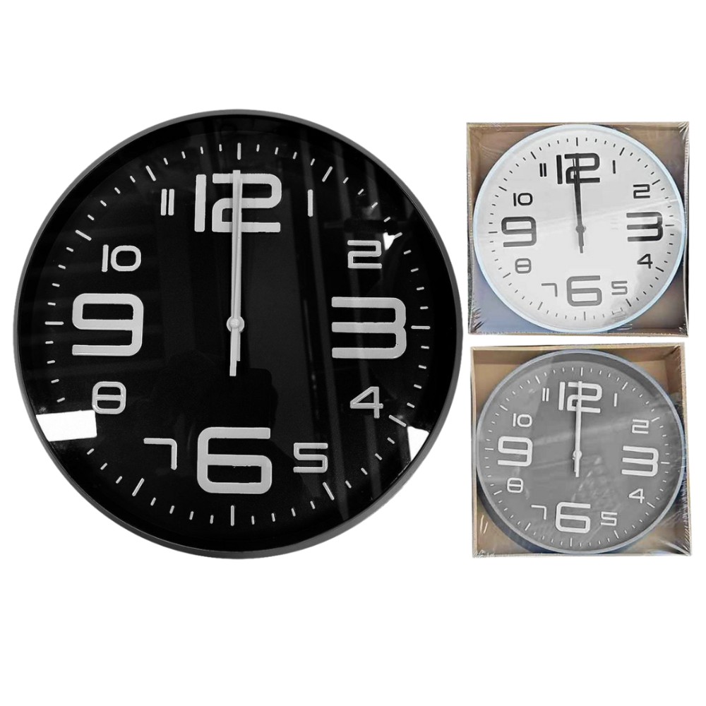Μοντέρνο ρολόι τοίχου με μινιμαλιστικό σχεδιασμό και μεγάλους, ευδιάκριτους αριθμούς για εύκολη ανάγνωση της ώρας από μεγάλη απόσταση. Διατίθεται σε τρία κομψά χρώματα: έντονο μαύρο, καθαρό λευκό και σύγχρονο γκρι. Ιδανικό για κάθε σύγχρονο χώρο, προσφέρει εξαιρετική λειτουργικότητα και στυλ.