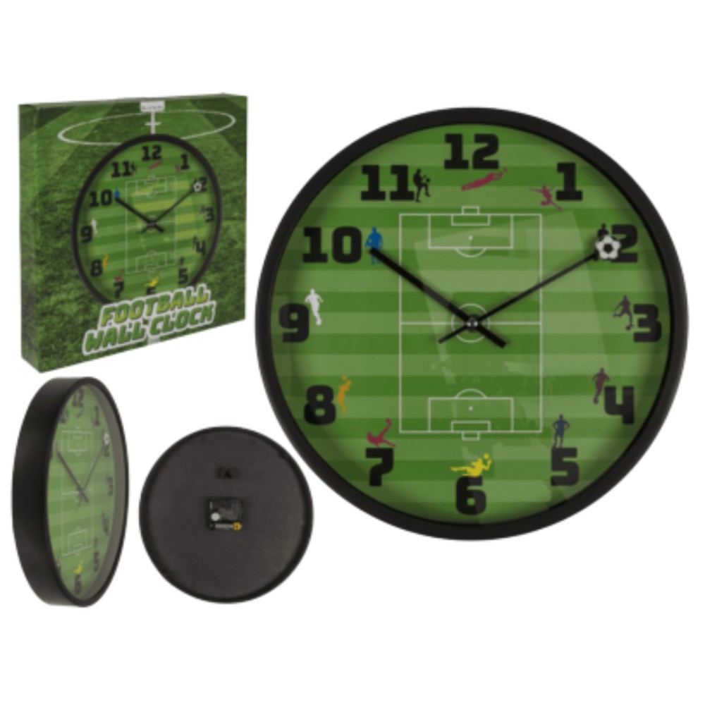 Ρολόι τοίχου με θέμα το ποδόσφαιρο είναι το τέλειο δώρο για φίλους του αθλήματος! Με γήπεδο στο καντράν, πολύχρωμες φιγούρες παικτών σε κάθε ώρα και μεγάλους αριθμούς, μετατρέπει κάθε δωμάτιο σε προπονητήριο. Ιδανικό για παιδικά δωμάτια και αθλητικούς χώρους!