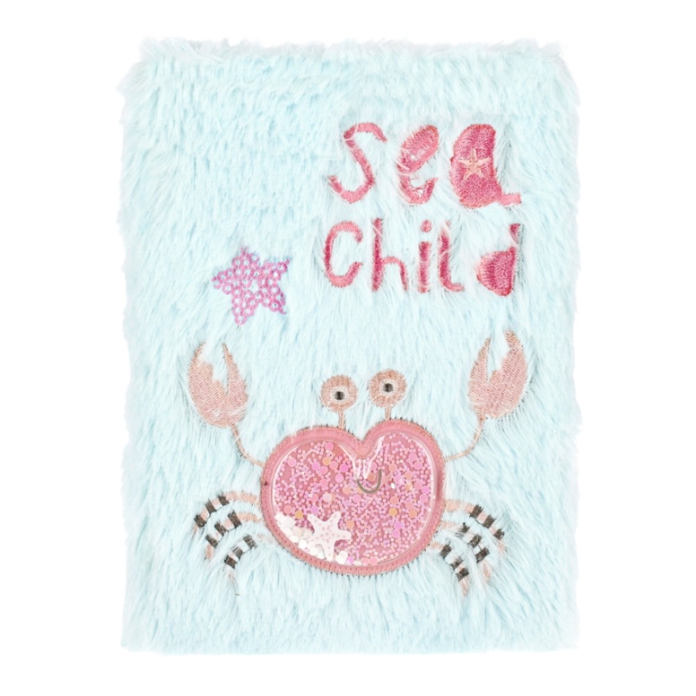 Αυτό το μαγευτικό σημειωματάριο με θαλασσινό θέμα "Sea Child" έχει χνουδωτό εξώφυλλο και διαδραστικό καβουράκι με καρδιά-shaker γεμάτη παγιέτες. Με κεντημένα κοχύλια, αστερία και παστέλ χρώματα, είναι το ιδανικό αξεσουάρ για μικρές γοργόνες που αγαπούν τη θάλασσα. Ονειρεμένο!