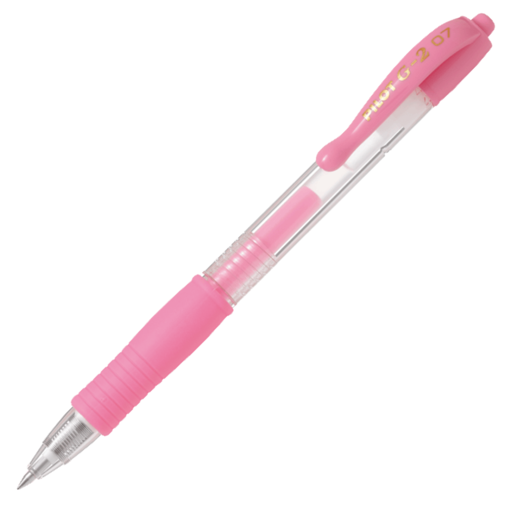 Στυλό Pilot G2 Rollerball με παστέλ ροζ χρώμα και διάφανο τμήμα που επιτρέπει την παρακολούθηση της στάθμης μελανιού. Εργονομικός σχεδιασμός με άνετη λαβή και μεταλλική μύτη για ομαλή γραφή. Ιδανικό για καθημερινή χρήση στο γραφείο ή το σχολείο με αξιόπιστη απόδοση.