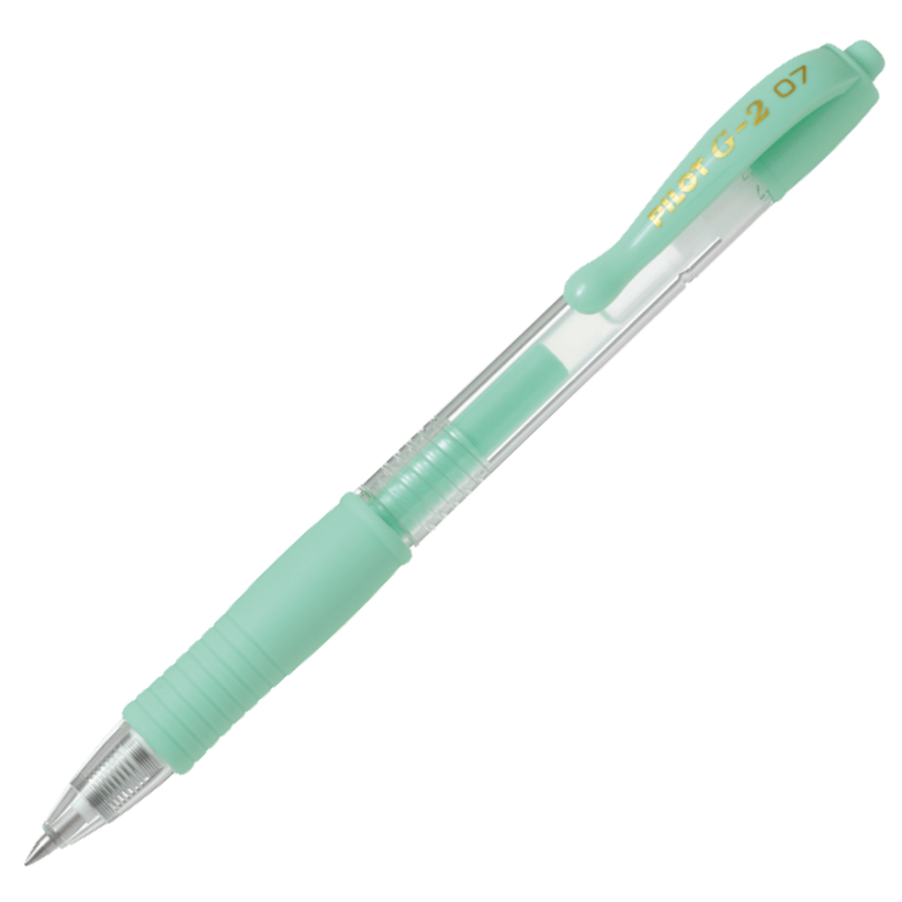 Στυλό Pilot G2 Rollerball με παστέλ πράσινο χρώμα και διάφανο τμήμα που επιτρέπει την παρακολούθηση της στάθμης μελανιού. Εργονομικός σχεδιασμός με άνετη λαβή και μεταλλική μύτη για ομαλή γραφή. Ιδανικό για καθημερινή χρήση στο γραφείο ή το σχολείο με αξιόπιστη απόδοση.