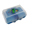 Παιδικό φαγητοδοχείο με διαφανές καπάκι και μπλε βάση, διακοσμημένο με χαριτωμένο δεινόσαυρο που παίζει μουσική. Περιλαμβάνει αποσπώμενα διαχωριστικά σε δύο τμήματα για οργάνωση τροφίμων. Ασφαλές πλαστικό χωρίς BPA, ιδανικό για σχολικά γεύματα. Εύκολο καθάρισμα και ασφαλές κλείσιμο.