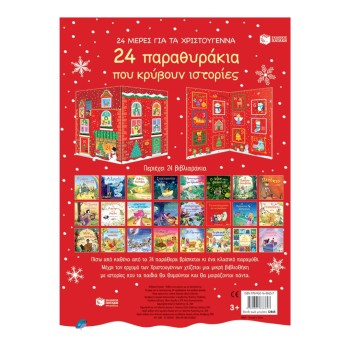 Κάθε μέρα τα παιδιά ανοίγουν ένα νέο παραθυράκι και ανακαλύπτουν ένα μικρό βιβλιαράκι με μια γιορτινή περιπέτεια. Αξέχαστη εμπειρία που ενισχύει την προσμονή για τη μεγάλη γιορτή!