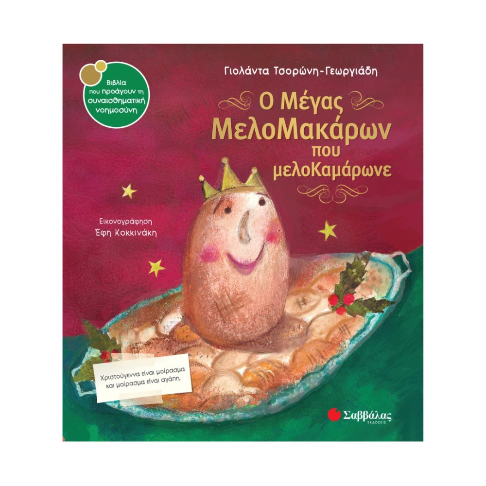 Ο «Μέγας ΜελοΜακάρωv που μελοΚαμάρωνε» της Γιολάντας Τσορώνη-Γεωργιάδη είναι ένα γλυκό, ζεστό και χριστουγεννιάτικο παραμύθι που μιλάει για την αγάπη, τη μοιρασιά και την αλληλεγγύη. Δύο χελιδόνια θέλουν να αφήσουν τη φωλιά τους και να μεταναστεύσουν, όμως τα σπουργιτάκια τα παρακαλούν: «Μείνετε ως τα Χριστούγεννα να μοιραστούμε αγάπη!» Τα χελιδόνια δυσκολεύονται να καταλάβουν τι σημαίνει να “μοιράζεσαι αγάπη”, μέχρι που ένα… μελομακάρονο –όχι οποιοδήποτε, αλλά ο Μέγας ΜελοΜακάρωv– τους δείχνει ότι η αγάπη μπορεί πράγματι να μοιραστεί και να γεμίσει τις καρδιές όλων.