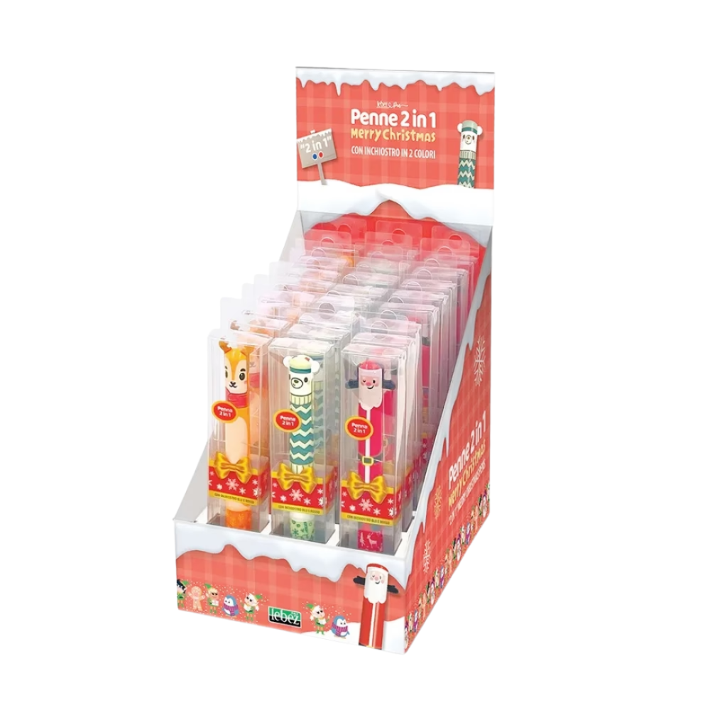 Το χριστουγεννιάτικο στυλό 2 σε 1 διαθέτει δύο χρώματα μελάνης (κόκκινο και μπλε) και διακοσμητική φιγούρα στην κορυφή με θέμα τα Χριστούγεννα. Ιδανικό δώρο για παιδιά, συνδυάζει τη χρηστικότητα με τη γιορτινή διάθεση.