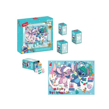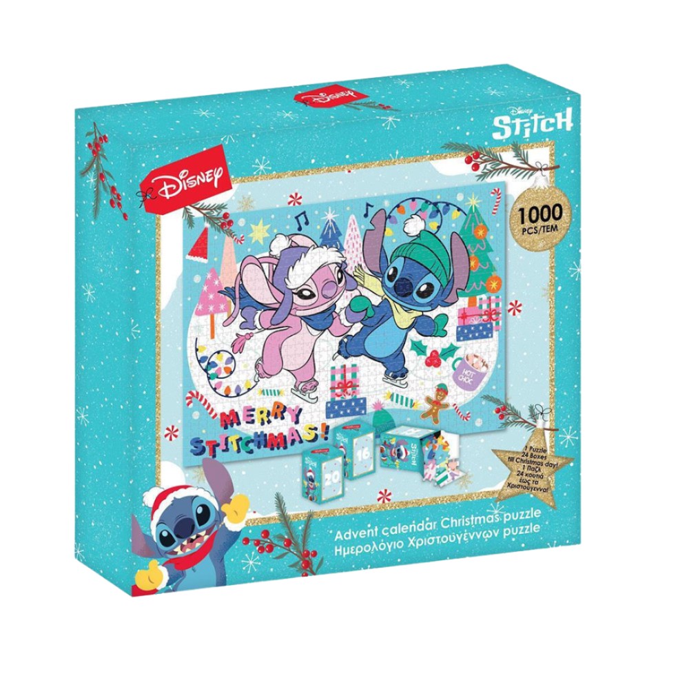 Το σετ περιλαμβάνει 1000 κομμάτια που, όταν ολοκληρωθούν, δημιουργούν μια χαρούμενη χριστουγεννιάτικη σκηνή με τον Stitch και την Angel να πατινάρουν, σε ένα γιορτινό, πολύχρωμο φόντο. Η ιδιαίτερη συσκευασία λειτουργεί σαν ημερολόγιο αντίστροφης μέτρησης: το παζλ χωρίζεται σε 24 μικρά κουτάκια, ένα για κάθε μέρα μέχρι τα Χριστούγεννα. Μια υπέροχη δραστηριότητα για παιδιά και ενήλικες, που προσφέρει χαρά, χαλάρωση και γιορτινή διάθεση.