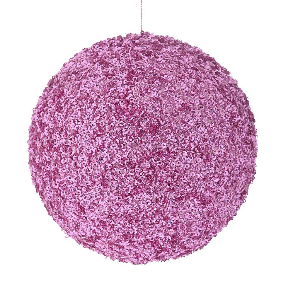 Εντυπωσιακή χριστουγεννιάτικη μπάλα καλυπτόμενη ολόκληρη με ροζ παγιέτες που λαμπυρίζουν, δημιουργώντας ένα μαγευτικό εφέ. Είναι ιδανική για να προσθέσει μια πινελιά λάμψης και κομψότητας στο χριστουγεννιάτικο δέντρο σας.