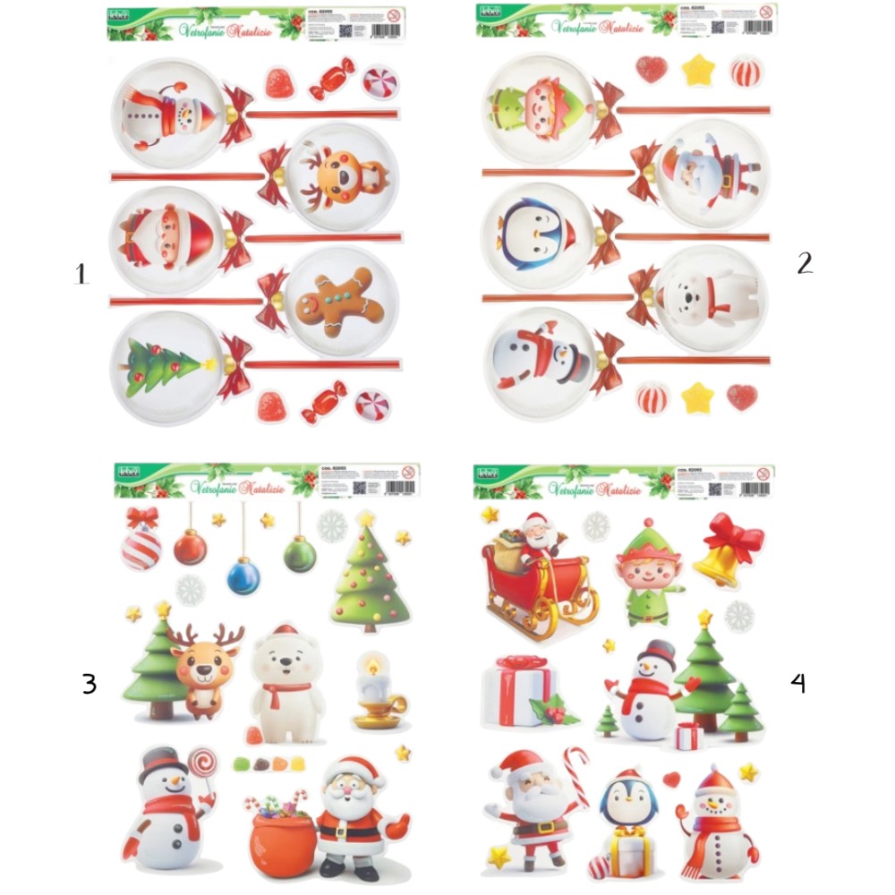 Γιορτινά αυτοκόλλητα παραθύρου "Vetrofanie Natalizie" μεταμορφώνουν τα τζάμια σε χριστουγεννιάτικα έργα τέχνης! Διαθέσιμα σε τέσσερα cute σχέδια με κρεμαστές μπάλες, Άγιο Βασίλη, elf, χιονάνθρωπους, ελάφια και στολίδια, είναι επαναχρησιμοποιήσιμα και εύκολα στην εφαρμογή. Μαγική εορταστική ατμόσφαιρα!