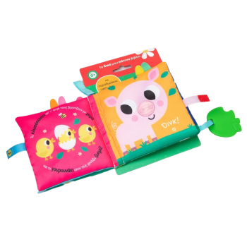 Ένα διαδραστικό υφασμάτινο βιβλίο "Στη Φάρμα" για μωρά 0+ μηνών με παραθυράκια, διαφορετικές υφές, ήχο και μασητικό. Γνωρίστε τα ζώα της φάρμας μέσα από πολύχρωμες σελίδες και αισθητηριακά ερεθίσματα. Ιδανικό για την πρώιμη ανάπτυξη.