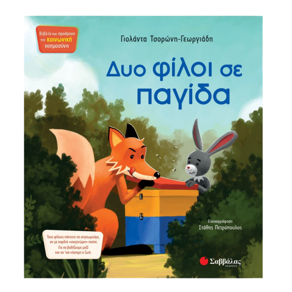 Ένα συγκινητικό βιβλίο "Δυο Φίλοι σε Παγίδα" που προάγει την κοινωνική νοημοσύνη μέσα από την ιστορία της αλεπούς και του λαγού. Όταν η καρδιά συγχωρεί, βρίσκουμε τη νόστιμη ζωή. Με όμορφες εικονογραφήσεις, διδάσκει αξίες φιλίας, συγχώρεσης και αγάπης.
